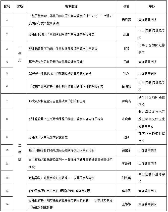 校本研修案例獲獎(jiǎng)名單