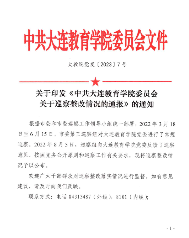 關(guān)于印發(fā)《中共大連教育學(xué)院委員會(huì)關(guān)于巡察整改情況的通報(bào)》的通知