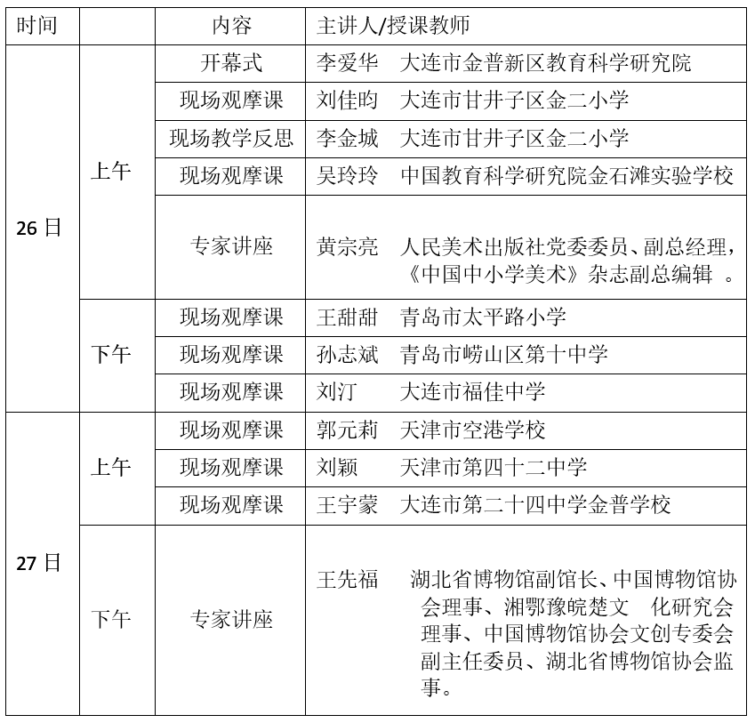 為全面貫徹落實(shí)中共中央國務(wù)院《關(guān)于全面加強(qiáng)和改進(jìn)新時(shí)代學(xué)校美育工作的意見》《關(guān)于深化教育教學(xué)改革全面提高義務(wù)教育質(zhì)量的意見》精神,堅(jiān)持"五育"并舉,全面發(fā)展素質(zhì)教育,搭建大連、青島、天津三地美術(shù)教師互通互融的交流平臺,人民美術(shù)出版社定于9月26日-27日舉辦"構(gòu)建'五育融合'教學(xué)共同體,打造'學(xué)段互通'育人新生態(tài)--大連、青島、天津三地美術(shù)學(xué)科聯(lián)合教研"活動(dòng),現(xiàn)將相關(guān)事宜通知如下: