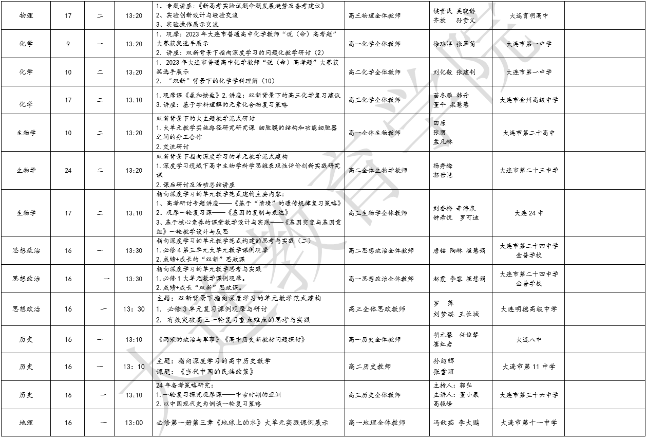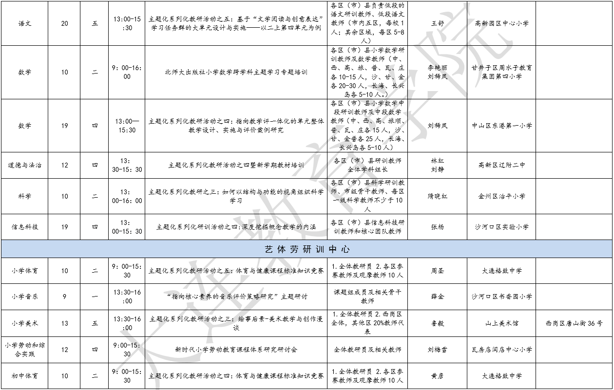 大連教育學院2023年10月教研活動一覽表