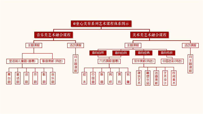 周小@童心美育課程把美育納入學(xué)校教育各學(xué)段、學(xué)生培養(yǎng)全過(guò)程,要充分體現(xiàn)國(guó)家"健全面向人人的學(xué)校美育育人機(jī)制"的目標(biāo)指向。課程設(shè)計(jì)時(shí),學(xué)校突破傳統(tǒng)美育校本課程或活動(dòng)僅限于少部分、有天賦、有條件的學(xué)生參與,而是致力于提供讓每一位學(xué)生都可以享受藝術(shù)的課堂。在保障國(guó)家課程開(kāi)足開(kāi)齊的前提下,對(duì)藝術(shù)課程進(jìn)行整體規(guī)劃。讓每個(gè)周小孩子都享有優(yōu)質(zhì)的藝術(shù)教育。"六坊"課程涵蓋連環(huán)畫(huà)、國(guó)畫(huà)、版畫(huà)、剪紙、玩偶、軟雕塑六大美術(shù)形式。"中國(guó)色彩"課程以中國(guó)傳統(tǒng)色彩為美育切入點(diǎn),融合歷史、文化、科學(xué)、德育等多學(xué)科多角度。"金話筒"兒童劇課程涵蓋舞臺(tái)劇、童話劇、京劇、話劇、歌劇、音樂(lè)劇六大劇種。課程以藝術(shù)為依托,實(shí)現(xiàn)每個(gè)學(xué)生全面而有個(gè)性的發(fā)展。所有課程都是面向全體學(xué)生,依據(jù)不同年齡階段學(xué)生的認(rèn)知水平及發(fā)展需求而進(jìn)行課程設(shè)計(jì)。讓每個(gè)周小的學(xué)生,通過(guò)六年的學(xué)習(xí)生活,接觸多樣的、豐富的、公平且優(yōu)質(zhì)的藝術(shù)教育。