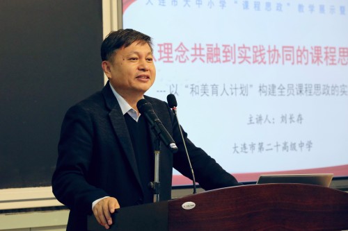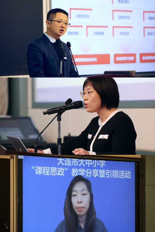 案例分享環(huán)節(jié)集中展示了我市大中小學(xué)課程思政建設(shè)的部分成果。大連市第二十高級(jí)中學(xué)校長(zhǎng)劉長(zhǎng)存以“從理念共融到實(shí)踐協(xié)同的課程思政建設(shè)”為題,分享了學(xué)校在課程思政建設(shè)方面的工作設(shè)計(jì)、行動(dòng)創(chuàng)新與實(shí)踐成效。莊河市桃源學(xué)校樸虹宇、大連經(jīng)濟(jì)技術(shù)開發(fā)區(qū)紅星海國(guó)際學(xué)校董彬彬、大連交通技師學(xué)院李銘、大連市第四十八中學(xué)許楊、大連大學(xué)周雯雯五位老師,結(jié)合學(xué)段、學(xué)科課例,分享了大中小學(xué)課程思政示范課的設(shè)計(jì)與實(shí)踐。