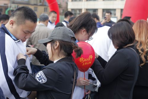 大會第二項,家長及任課教師給高三學(xué)生佩戴徽章,高三學(xué)生與家長互送信件,并將信件大聲朗讀。隨后高三學(xué)生給老師和家長一個深深的擁抱,以表達(dá)彼此心中的愛。