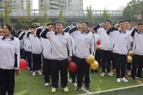 大會第八項,高一高二全體師生為高三學(xué)生加油打氣,連著三遍的“十八而至,青春萬歲”響徹云霄。