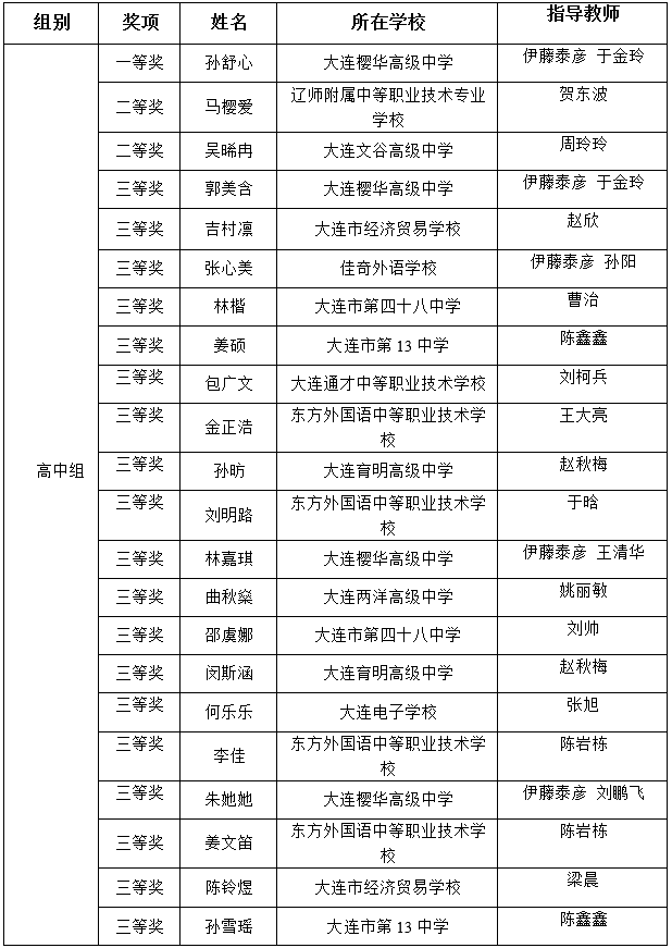 大連市第35屆"佳能杯"日語演講比賽(中小學(xué)組)獲獎名單
