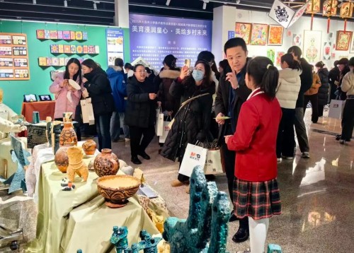 研討會后,2025-2026年度大連市小學(xué)美術(shù)“美育浸潤童心·美繪鄉(xiāng)村未來”教學(xué)成果展在金州博物館開幕。本次展覽依托金普新區(qū)美術(shù)教研聯(lián)盟特色,匯集區(qū)域內(nèi)多所學(xué)校的教學(xué)實踐與學(xué)生作品,涵蓋鄉(xiāng)村美育、民間藝術(shù)、中國畫、陶藝實踐、繪畫與綜合材料、數(shù)字影像與AI輔助創(chuàng)作等多種形態(tài),既呈現(xiàn)兒童真誠、生動的藝術(shù)表達(dá),也映射出教師在教學(xué)創(chuàng)新中的專業(yè)思考。