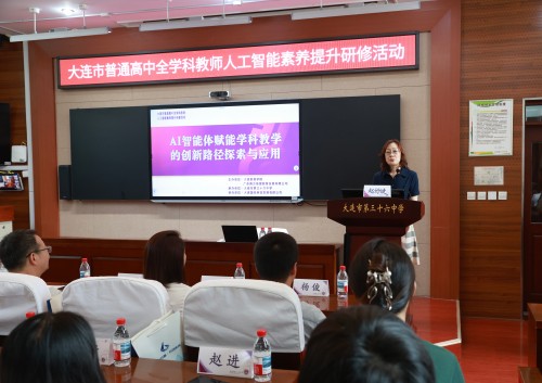 近日,“大連市普通高中全學(xué)科教師人工智能素養(yǎng)提升研修活動”在大連市第三十六中學(xué)圓滿舉辦。大連教育學(xué)院副院長趙妤婕出席活動并致辭。本次活動由大連教育學(xué)院主辦,采用線下與線上相結(jié)合的研修模式,吸引了超1萬人次在線觀看。